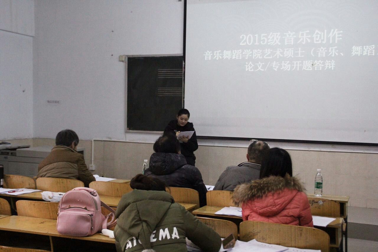 根据研究生处下发文件,国家艺术硕士教育指导委员会相关文件及我院艺术硕士毕业标准的文件要求,我院于2016年12月18日进行首届艺术硕士毕业论文/毕业专场开题答辩,以专业方向分为四组进行(器乐演奏,声乐演唱,音乐创作及舞蹈表演与舞蹈编导),各评审组由各方向导师及校外导师组成。答辩前,各方向答辩评审组组长进行了一个简短的开题答辩工作会议,上午9:00,正式开始答辩。以下为各小组答辩现场图片。