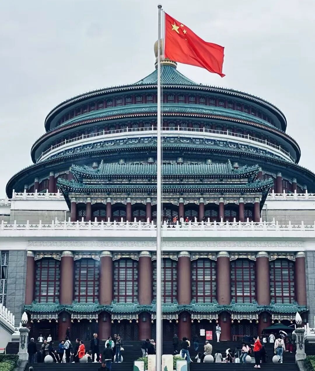 踏入重庆人民大礼堂,同学们凝神倾听讲解员诉说这座建筑的设计巧思与时代意义。朱红廊柱与金色琉璃瓦交相辉映,对称庄严的建筑格局,承载着山城人民建设家园的豪情壮志。