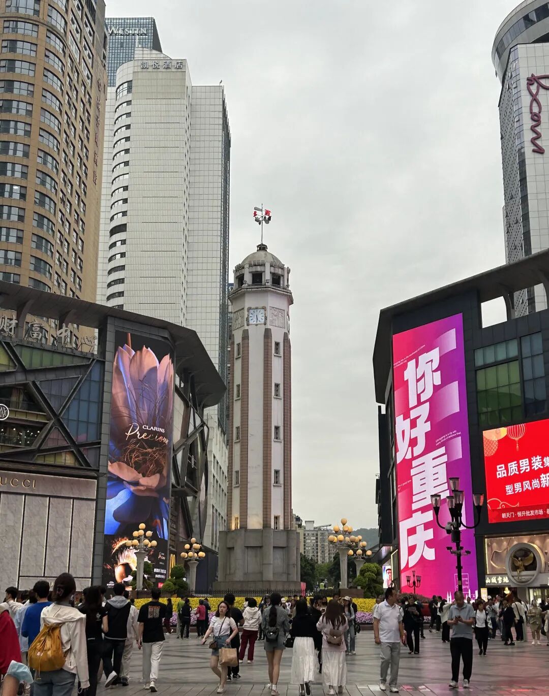 来到解放碑前,同学们静静聆听讲解员对这座抗战胜利纪功碑的深情解说。一块块厚重的碑体浮雕,一段段激昂的抗战往事,仿佛将大家带回了那段烽火连天的岁月。