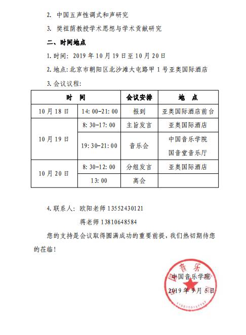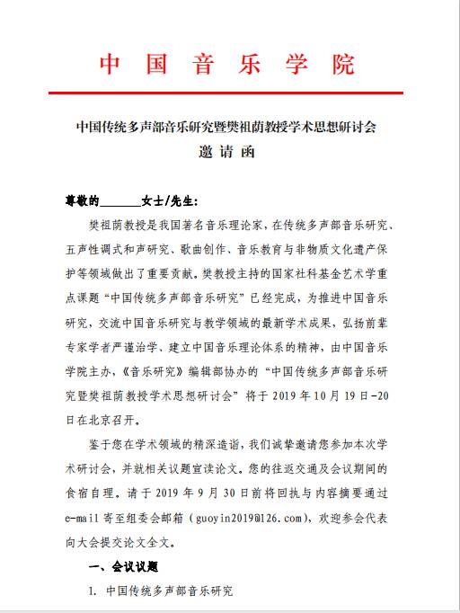 中国传统多声部音乐研究暨樊祖荫教授学术思想研讨会邀请函