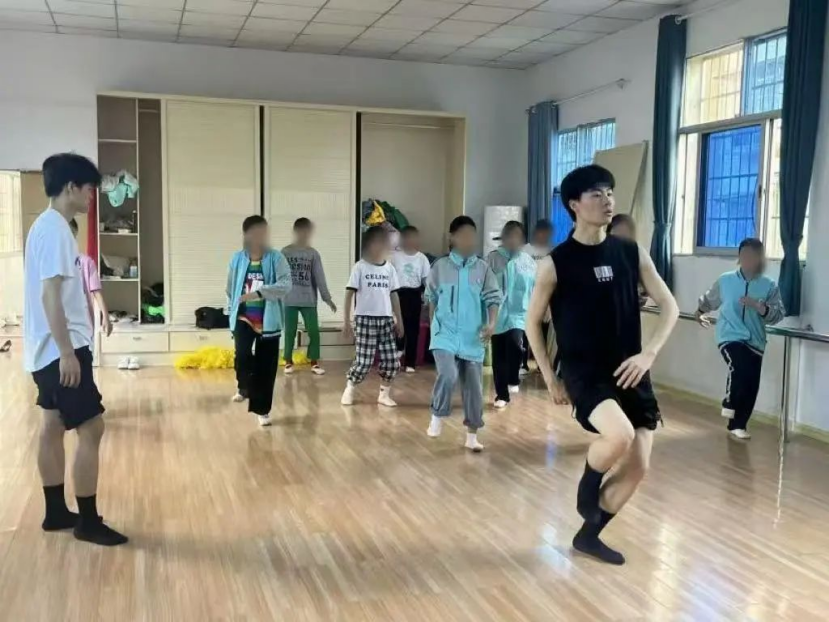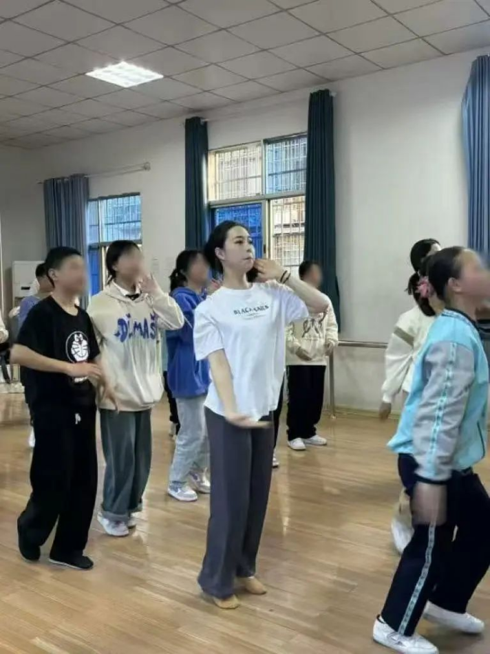 支教的挑战远超想象。当2022级舞蹈学二班的同学们第一次真正开始教学时,他们才意识到,教听障孩子跳舞,远不是“放慢动作”那么简单。音乐的节奏、舞蹈的韵律,对普通孩子来说自然而然的感知,对这些孩子而言,却像隔着一道无形的墙。当音乐“消失”,舞蹈如何继续?起初,志愿者们尝试用最直接的方式——放大音乐,用力拍手打节拍。但孩子们依然一脸茫然,因为他们听不见。那一刻,同学们才真正明白,他们必须彻底改变教学方式。在教学内容上,同学们也花了很多心思,教基本功、技术技巧,还有民族舞,同时也把网络上流行的舞蹈也加了进来。而且,大家还根据每个孩子的情况,制定了不同的教学计划,希望每个孩子都能在舞蹈里找到快乐。