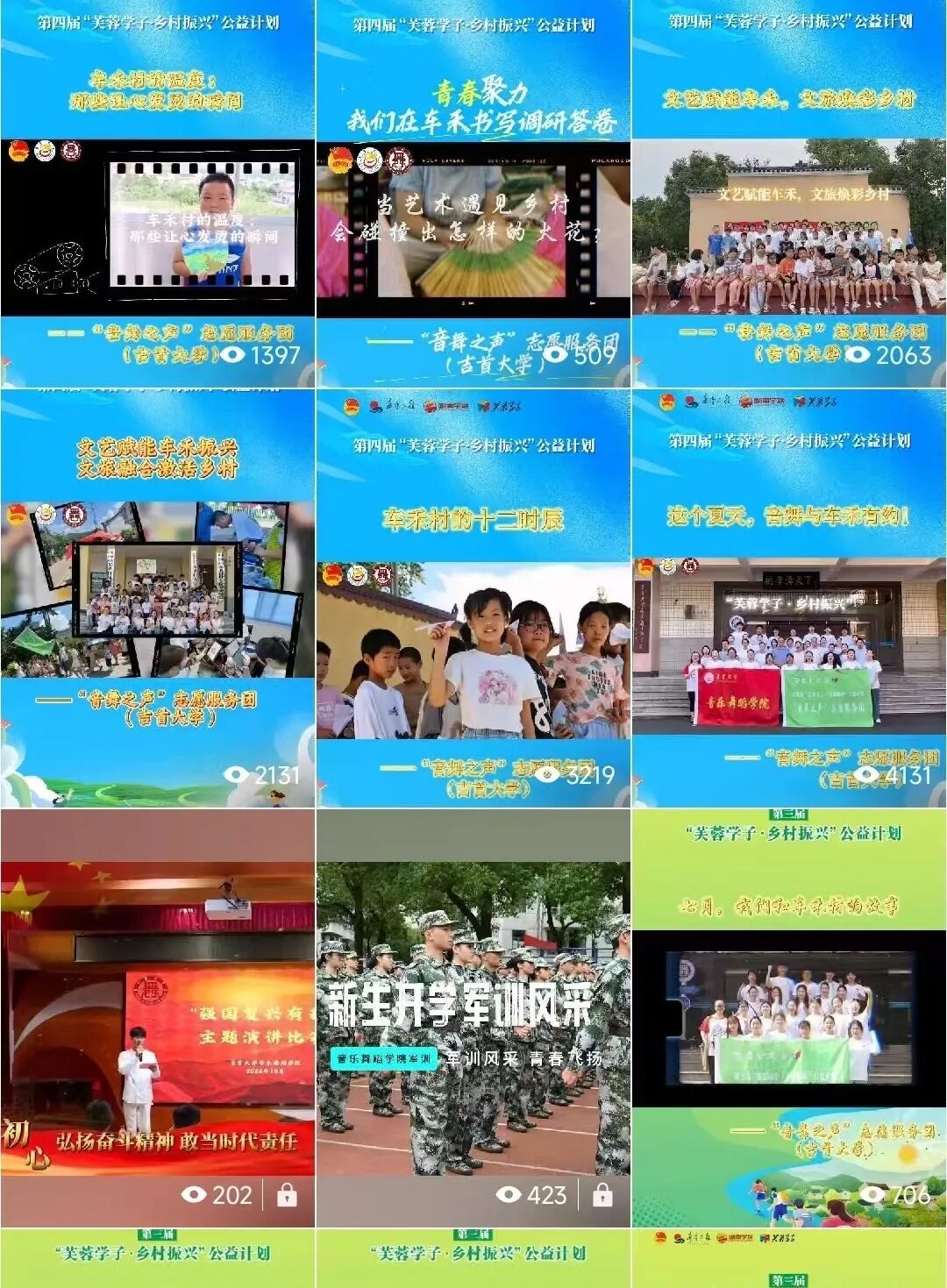 在微信视频号发布新生军训、“三下乡”、“芙蓉学子·乡村振兴”公益计划活动期间发布艺术支教、文艺汇演、主题调研等视频内容,累积浏览量4.5万。
