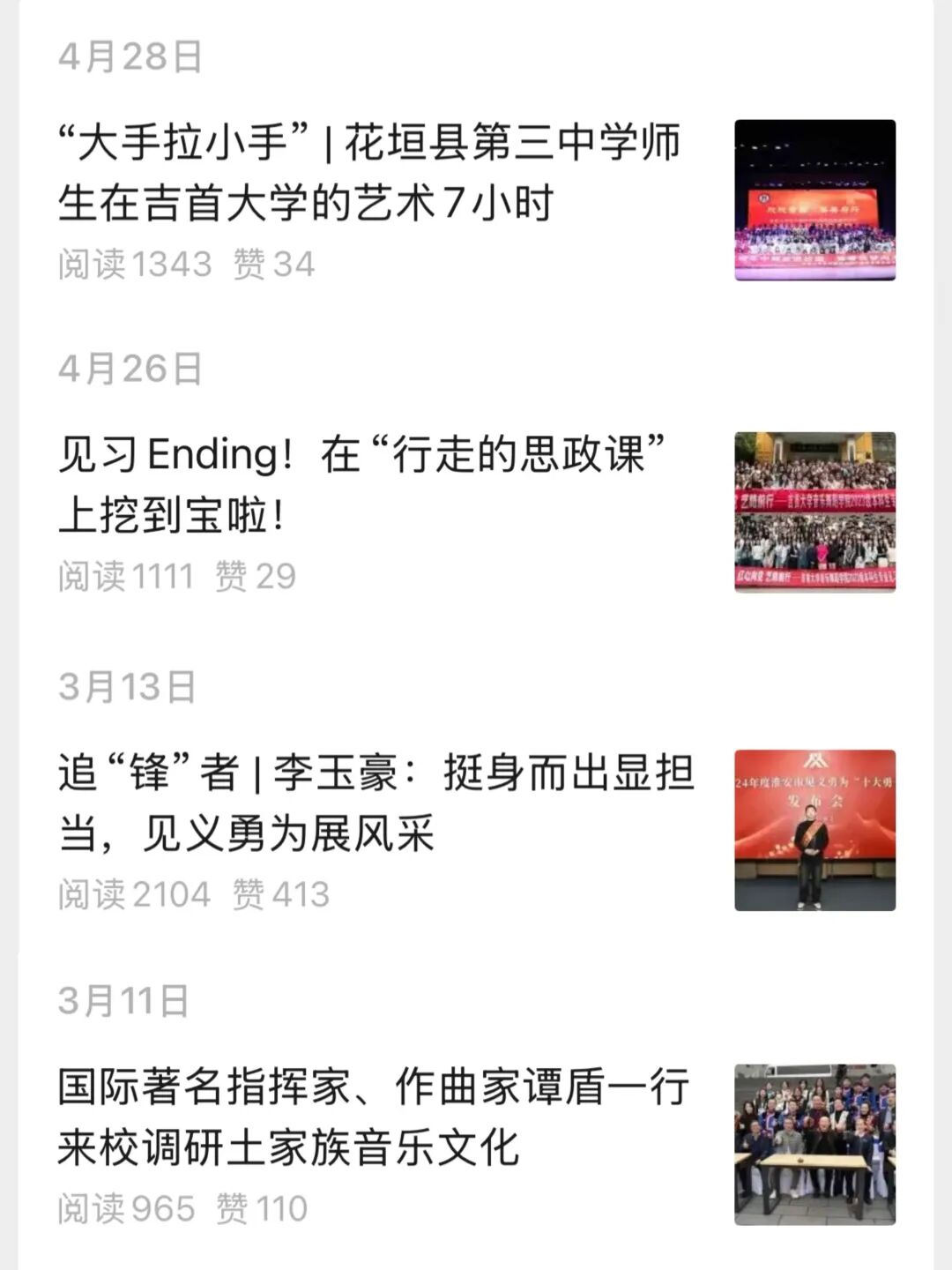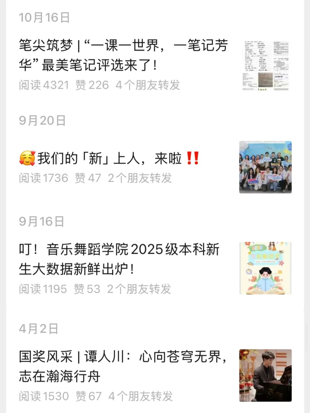 过去一年里,学院“音舞之声”公众号增加粉丝数量1000余人,累计发布推文158篇,累计阅读量高达10.2万。