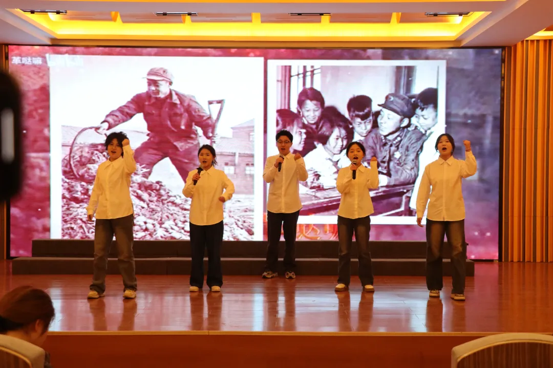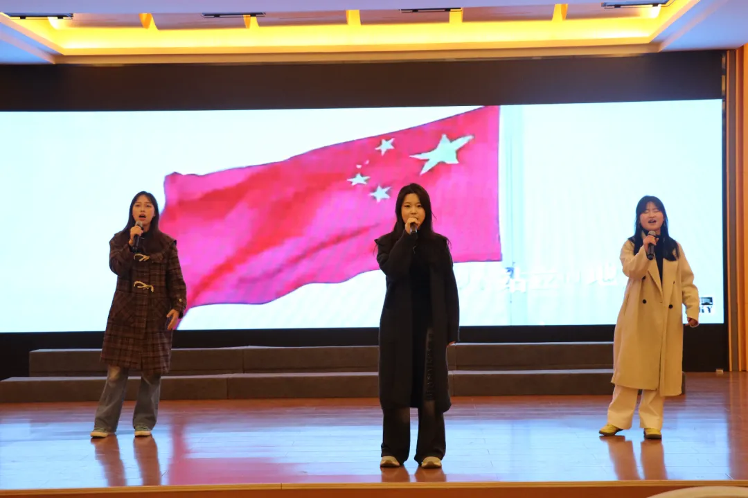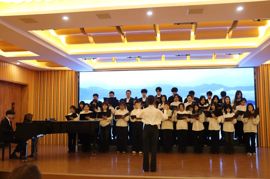舞蹈篇章以充满张力的肢体语言,勾勒出平凡坚守者的奉献群像;激昂的歌曲与多声部合唱交相辉映,用层层递进的旋律织就青春接力的誓言;铿锵诗朗诵以字句为炬,点燃全场热血,而终场恢弘的合唱中,翻飞的红旗与澎湃歌声交融,将雷锋精神升华为赤子丹心的时代共鸣。这场主题团课,打破了讲台与舞台的边界,让思政教育看得见澎湃的信仰、听得见炽热的心跳、品得出时代的回甘,雷锋精神的传承在年轻的心跳中焕发新韵——原来,信仰的种子,也可以在琴键上发芽,于聚光灯下绽放!