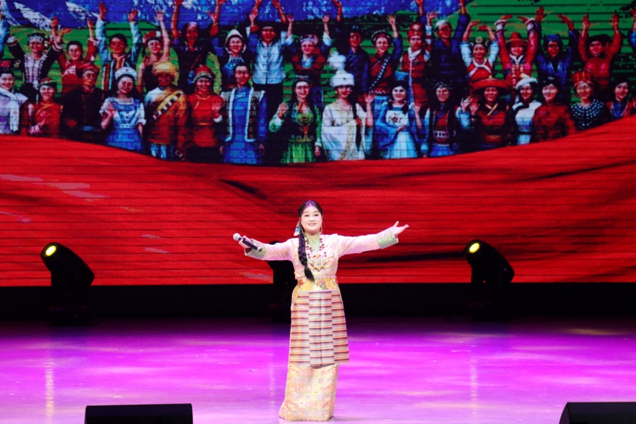 舞蹈基础训练展示《舞育桃李》以扎实的基本功和规范科学的训练体系,诠释了“台上一分钟,台下十年功”的艺术真谛。2023级学生何雨婷带来《再唱山歌给党听》,其清澈嘹亮的嗓音与真挚情感,展现了青年学子一心向党的精神风貌。