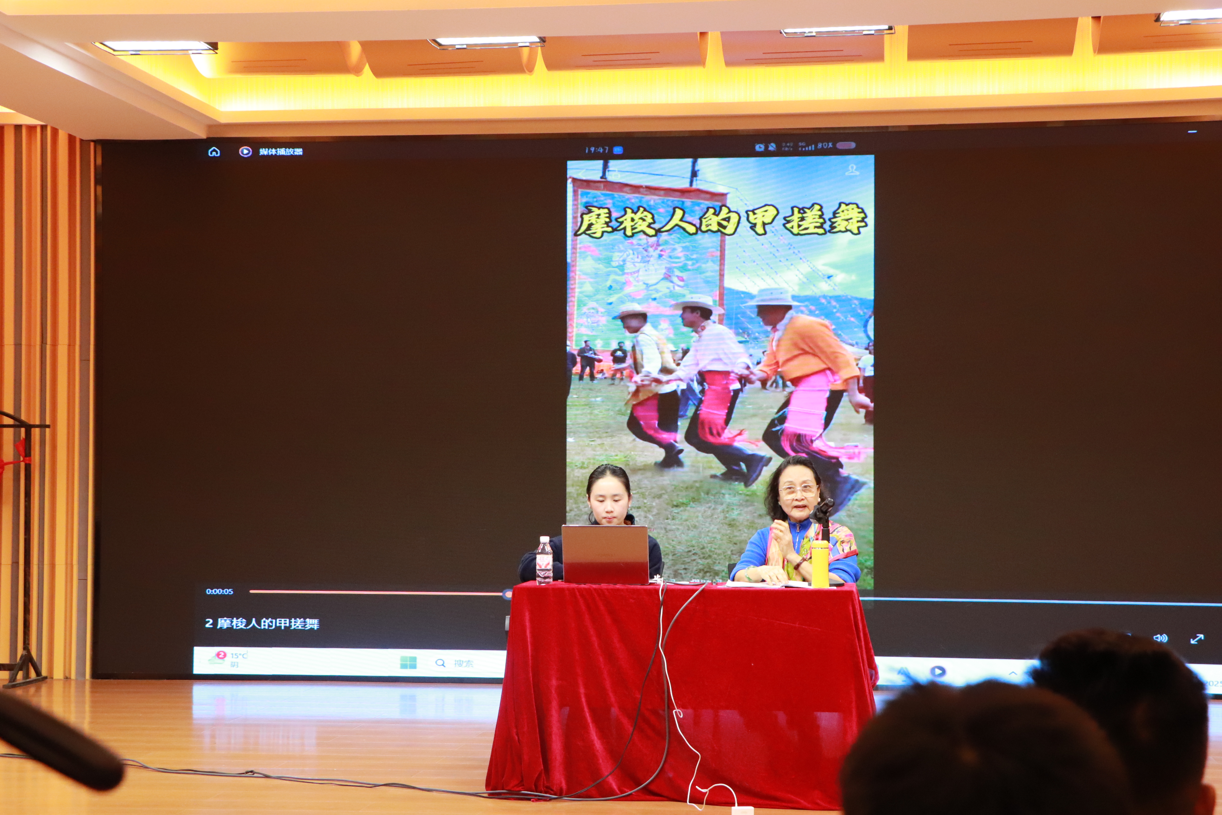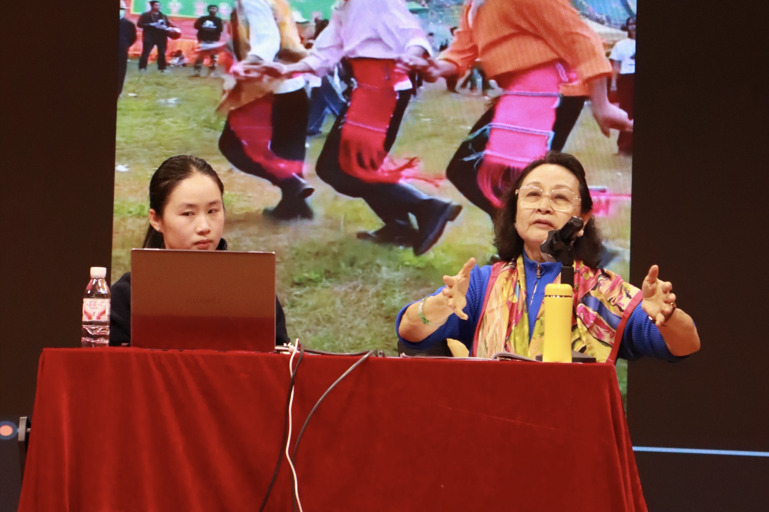 最后,金秋教授以藏族非遗“拉孜堆谢”为例,深入剖析了其中蕴含运动的“文化内核”:慢板节奏舒展,尽显高原人民的沉稳气质;快板节奏利落,彰显出该民族的热情奔放。另一方面,教授指出各民族舞蹈的“姿态造型、组合动作”,本质上是将文化精神转化为可感知的身体语言。各民族的姿态与组合动作,皆是文化精神的生动身体诠释——每一个动作,都宛如民族性格的鲜活映照。