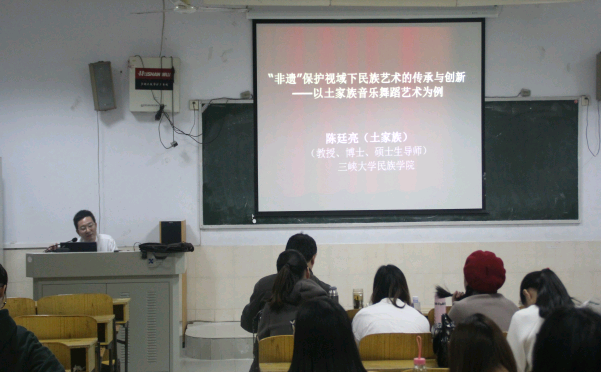2016年11月6日,三峡大学民族学院博士、硕士生导师陈廷亮教授对我院师生进行了一次非物质遗产下的民族艺术的传承和创新的讲座。教授从