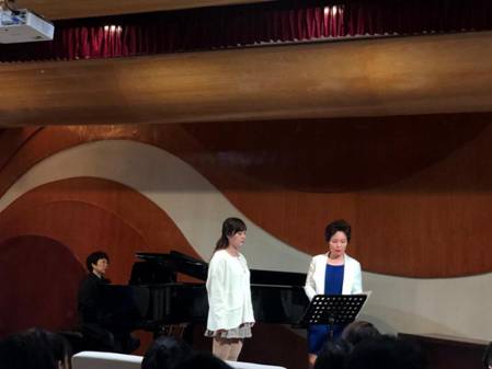 图为韩昌梅教授指导我院研究生蒲金晶演唱《情歌》