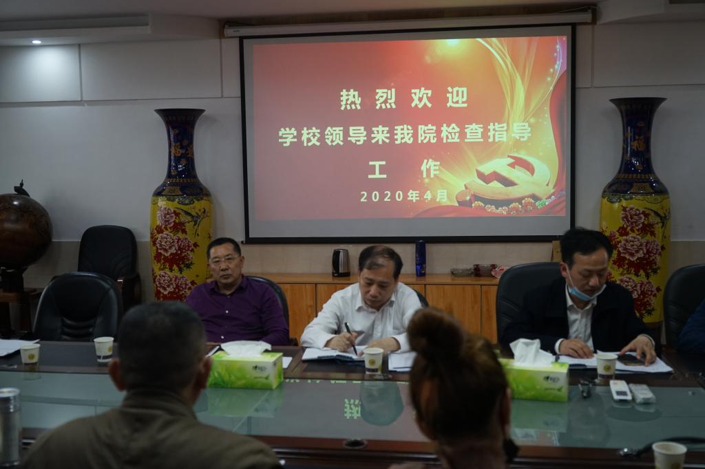 李开沛院长首先代表学院领导班子向廖志坤校长及各部门领导一行来学院调研和指导工作表示热烈欢迎,随后详细地介绍了学院的基本情况和发展现状,以及学院目前正在开展的一些工作和2020年的党政工作要点;其次,也向各位领导介绍了学院工作存在的一些主要问题及原因。最后,李开沛院长就学院今后的发展向各位领导提出了一些具体请求,并希望学校及各职能部门能够给予理解和大力支持。
