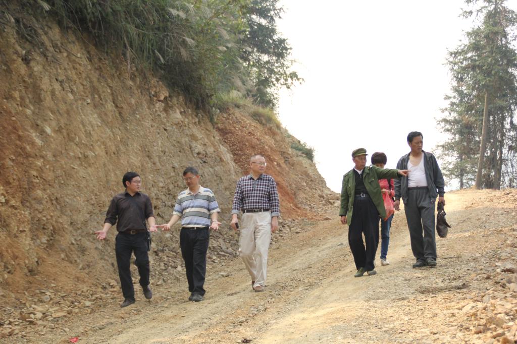 图为龙先琼副校长带领学院领导先村干部了解情况