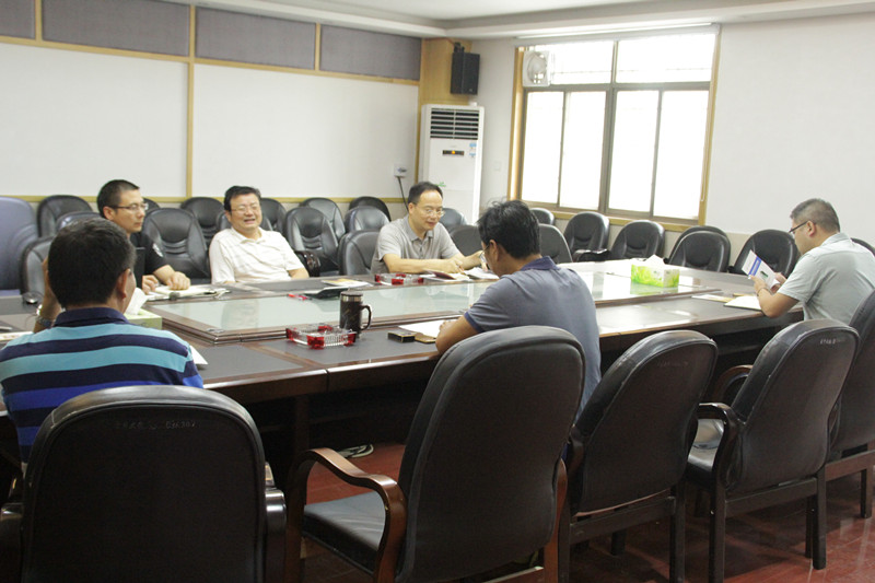 图为学院党总支书记彭业锦向冷志明副校长汇报学院工作