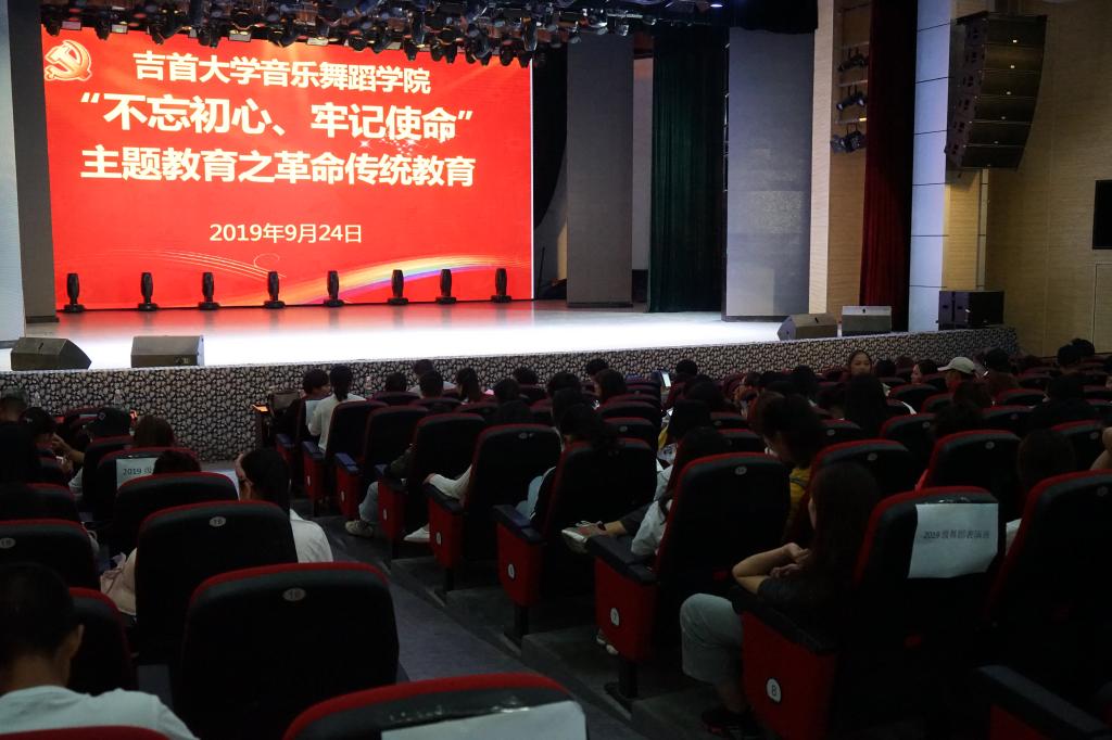 2019年9月24日下午,Williamhill中文官网党委组织学院班子成员,没有课的教职工、硕士研究生、部分学生在学校实验剧场举行了“不忘初心、牢记使命”主题教育之革命传统教育。会议由党委副书记高昆主持。