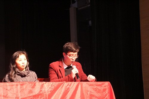 接着2013级音乐学一班李震作为毕业生代表发言。他先表达了对学院领导老师和用人单位的谢意。他说道,感谢学院的悉心培养,让广大学子拥有了一技之长,让他们学习知识技能、学会做人做事,感谢学院促成此次供需见面会,让毕业生们不出校门就能享受到就业的诸多资源,省去了漫无目的找工作的压迫感;感谢用人单位提供的诸多机会,给了学生们以信心和无限的动力。最后他表示四年很短,但他们一定会将学到的最知识运用到工作岗位上,努力成为有益于社会、能担当敢进取、不断进步的人。