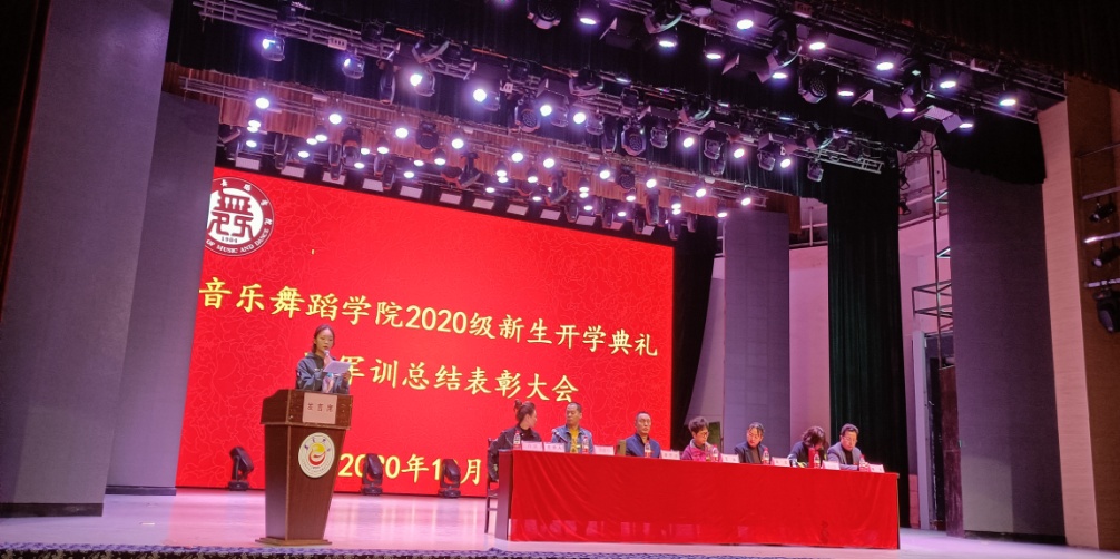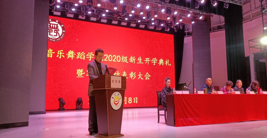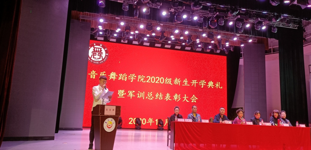 院党委副书记高昆宣读2020级新生班主任任命文件:2020级辅导员鲁明新、音乐学一班班主任董亚龙、音乐学二班班主任程采晴、音乐学三班班主任李娅、舞蹈学一班班主任黄雨薇、舞蹈学二班班主任刘安然。