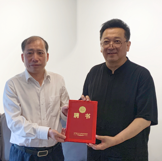 图为校党委书记廖志坤为声乐教育家郁钧剑颁发客座教授聘书
