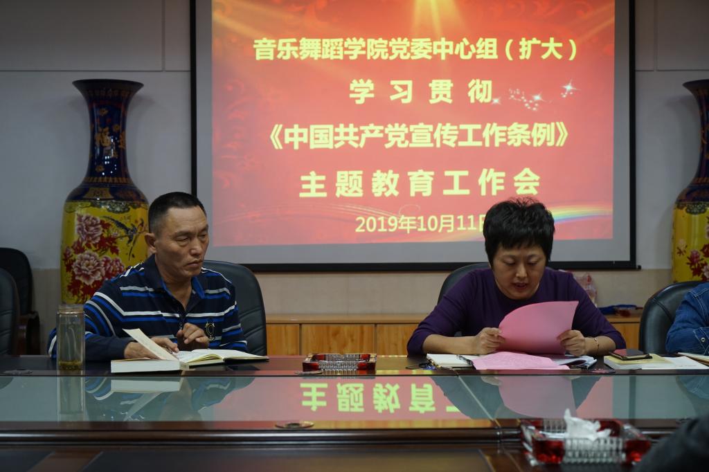 2019年10月11日,Williamhill中文官网党委在会议室召开党委理论学习中心组扩大会议,进行《中国共产党宣传条例》的专题学习。会议由学院党委书记王元主持,学院领导班子成员、党委委员、党支部书记参加本次专题学习。