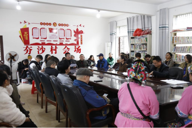 在村委会会议室,学院党委书记王元带领全体党员重温入党誓词,坚定初心使命。教工党支部书记、湖南省高校“双带头人”标兵陈东以“宣传贯彻党的二十大精神,繁荣发展文化事业和文化产业”为主题,为镇、村两委干部和支部党员宣讲党的二十大精神,大家还围绕“文艺赋能乡村振兴”展开座谈交流,共同商讨乡村振兴发展思路。