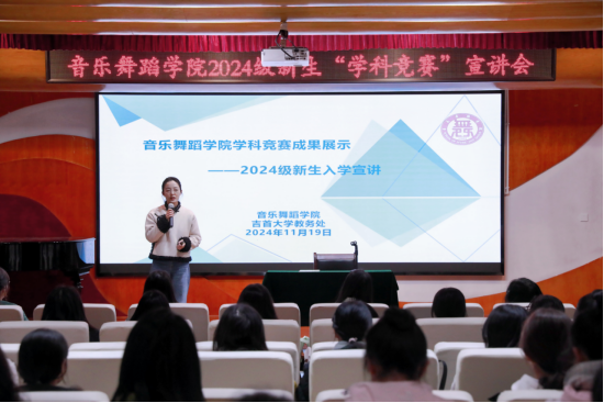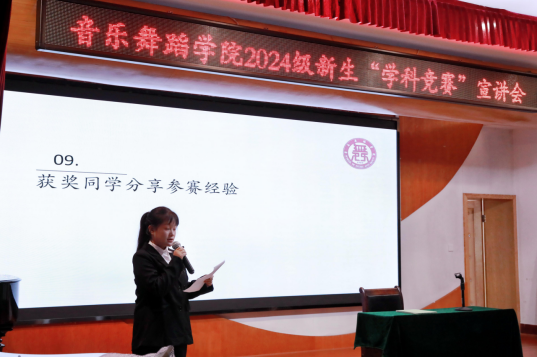为深入实施促进青年人才培养,深化学科素质能力提升,并进一步激发学生的学科竞赛参与热情,2024年11月19日中午13:30,Williamhill中文官网在三楼小音乐厅开展“Williamhill中文官网2024级新生学科竞赛宣讲会”主讲人为Williamhill中文官网艺术实践创新工作室指导老师戴甜,本科生2023级何雨婷、2021级蒋佳琦、2024级新生班级代表参与此次宣讲活动。