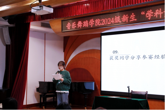 最后,戴甜老师鼓励在座的新生同学积极参与学科竞赛,在竞赛中锻炼个人专业技能,通过竞赛“以赛促学”,将课堂所学运用于实践,在拓展专业视野的同时丰富舞台实践经历,为将来的升学或者就业打下坚实的基础。