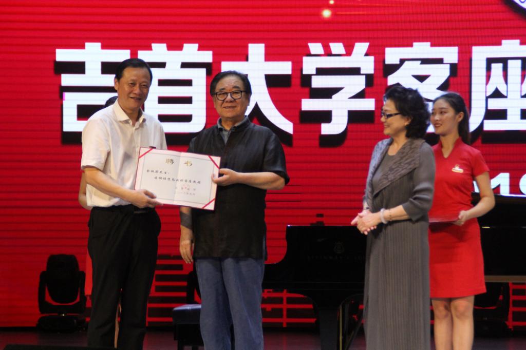 音乐会开始前,william威廉中文官网校长白晋湘教授为金铁霖教授及马秋华教授颁发了william威廉中文官网特聘教授证书,马秋华教授发表讲话,表达了对湘西地区声乐教育事业的支持。