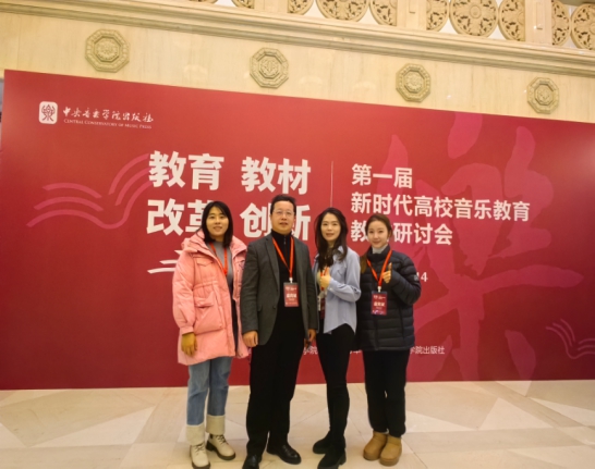 为加快新时代中国高校音乐教育教材体系建设,推动新时代中国高校音乐教育高质量发展,中央音乐学院出版社于2024年12月13日—14日在北京中央音乐学院举办了“教育·教材·改革·创新”第一届新时代高校音乐教育教材研讨会。我院音乐系系主任陈东副教授及青年教师曹漪、殷梦霜、陶婷婷代表学院参会。