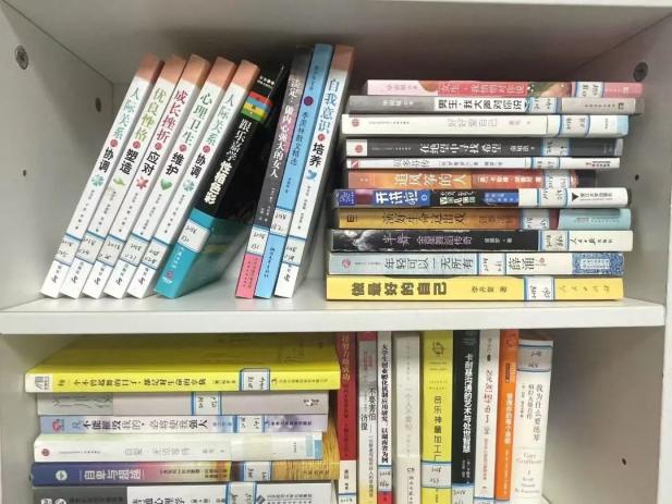 辅导室的心理藏书区有专业理论书籍和温馨图画书可供阅读或借阅哦!