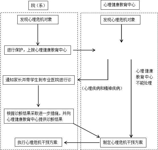 心理危机干预工作是实现心理健康教育基本目标的重要渠道。高校心理危机干预工作要遵循心理健康教育全体性、教育性、发展性的教育原则。根据我院学生特点,促进我院心理健康教育工作的顺利开展,特制定本实施意见。