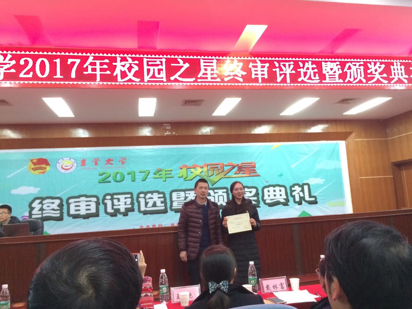 她的工作虽繁重,但她丝毫没有用敷衍的态度去对待,每一件事,事无大小,她都选择认认真真尽力做到最好。有着如此工作精神的她,顺理成章的获得了2015、2016年的“优秀学生干部”称号。