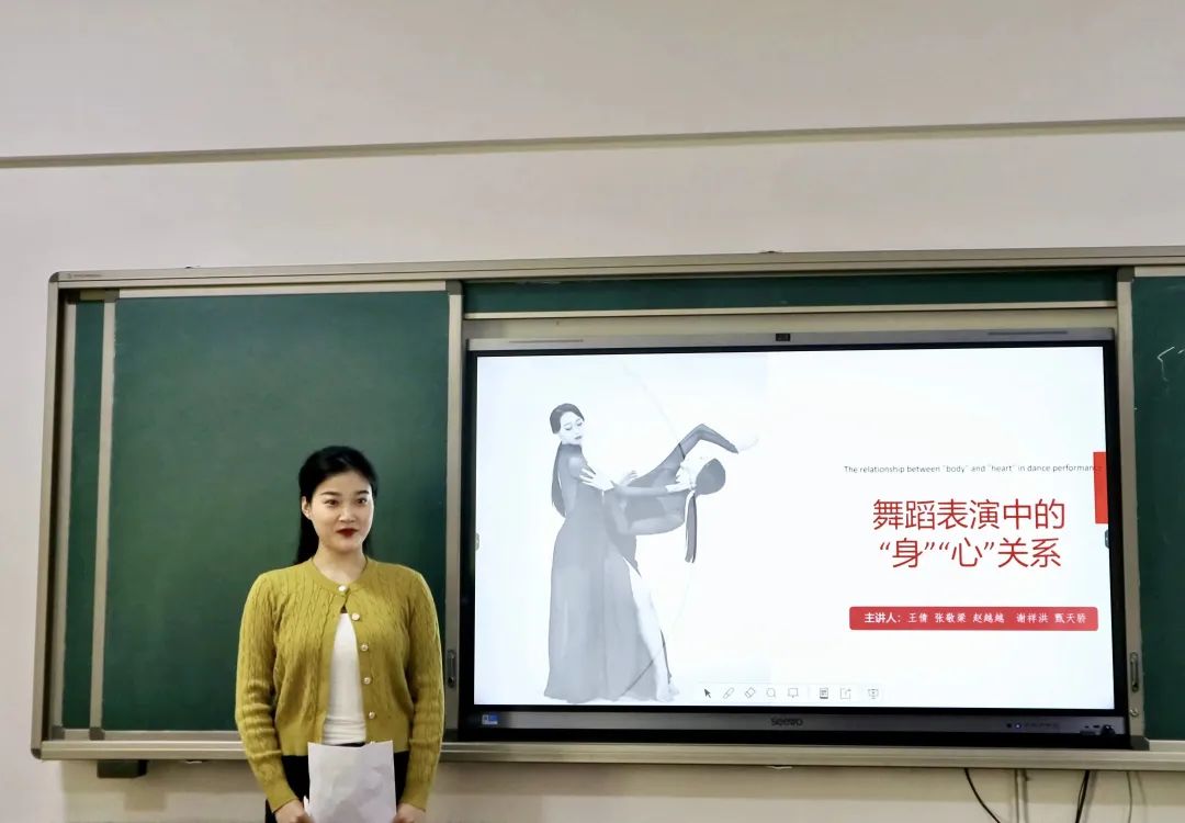 王倩同学从“身”“心”关系中舞者存在的三种可能性中,由“心”至“身”,以舞蹈剧目中舞者所呈现的状态来进行分析讲解论证。