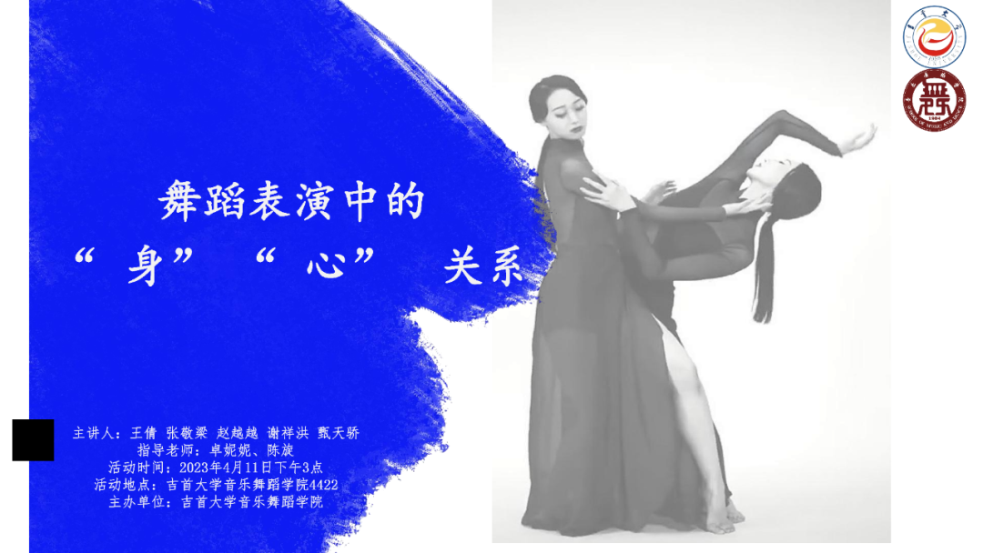 2023年4月11日下午15:00,由Williamhill中文官网2020级硕士研究生王倩、张敬梁、赵越越、谢祥洪、2021级硕士研究生甄天骄主讲,Williamhill中文官网硕士研究生导师卓妮妮老师、陈旋老师、以及william威廉中文官网部分研究生们与本科生到场指导交流的“舞蹈表演中的‘身’‘心’关系”艺术沙龙活动在Williamhill中文官网研究生教室4423成功开展。