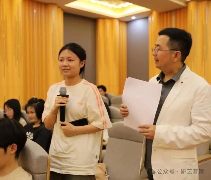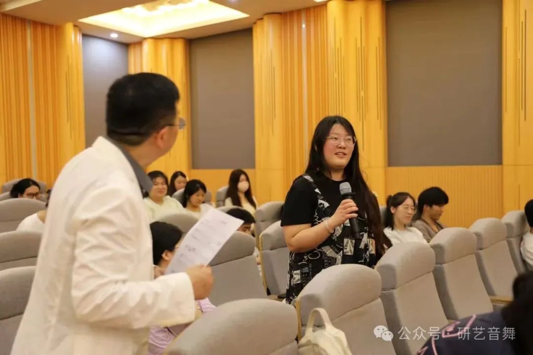 现场的师生们积极参与互动,就声乐学习中的困惑、舞台表演经验等问题向陈辉副教授请教。陈辉副教授耐心解答,他鼓励同学们要保持对声乐艺术的热爱,不断在实践中探索和进步。