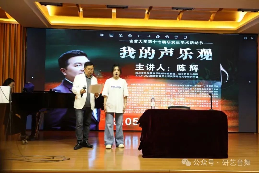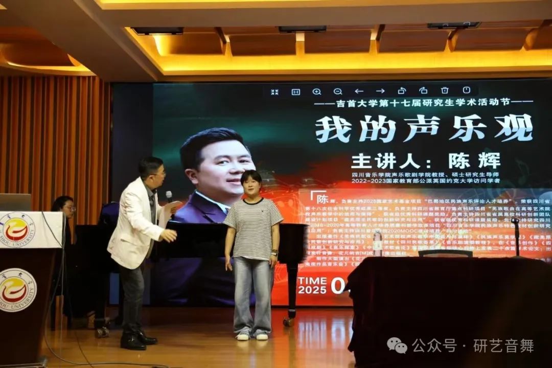 2025年5月21日下午4点,Williamhill中文官网一楼音乐厅内座无虚席,由四川音乐学院声乐歌剧系副教授陈辉主讲的“我的声乐观”讲座在此成功举办,本次讲座是william威廉中文官网第十七届研究生学术活动节的重要活动之一。